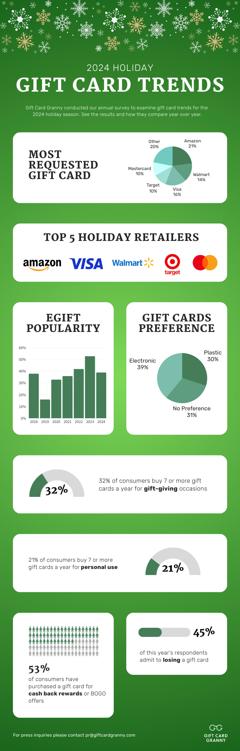 The survey was conducted from November 11–25, 2024, with Gift Card Granny users aged 18 and older. The margin of error is ±2% at a 98% confidence level.